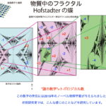 量子力学によると水素原子内の電子は勝手なエネルギーをとれず,離散的になることは高校の物理でも学ぶと思いますが,結晶のなかの電子のエネルギーもまた不連続な値しかとりません。結晶に強磁場を印加したとき,そのエネルギーの値を結晶の基本単位を貫く磁束を変えながら描くと,図のように拡大してもどんどん似たような絵が出てくるフラクタルな図となります。蝶に似てるので最初にこの絵を描いた人にちなんでホフスタッターの蝶と呼ばれています。更にこの図には,赤字と青字で示すような謎の数字が付随しています。この数字はトポロジカル数と呼ばれていて,この図にこの数字を初めて書き込んだ論文には2016年のノーベル物理学賞が与えられました。筑波大学理工学群物理学類の初貝研究室では,こんな感じのことを研究しています。詳しく知りたい方はこちら!。